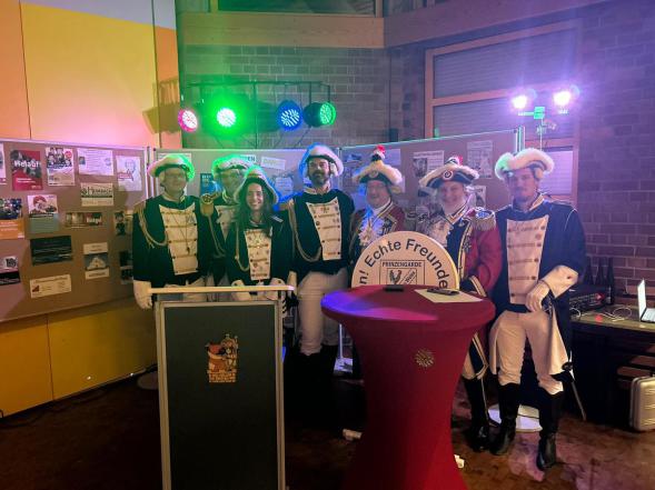 Am Samstag, den 9. November konnte eine große Abordnung des Vorstandes der Einladung der Närrischen Turmgarde zum 4x11-jährigen Festkommers folgen. Der erste Vorsitzende Andreas Paulik gratulierte den Freunden der NTG im Namen der Funken und überreichte einen Stehtisch mit der Aufschrift „Echte Freunde stehen zusammen!“ Im Anschluss gab es noch die Gelegenheit, der Geschichte der NTG anhand der Ausstellung auf die Spur zu kommen und sich gemeinsam auf die Kampagne 2025 einzustimmen.