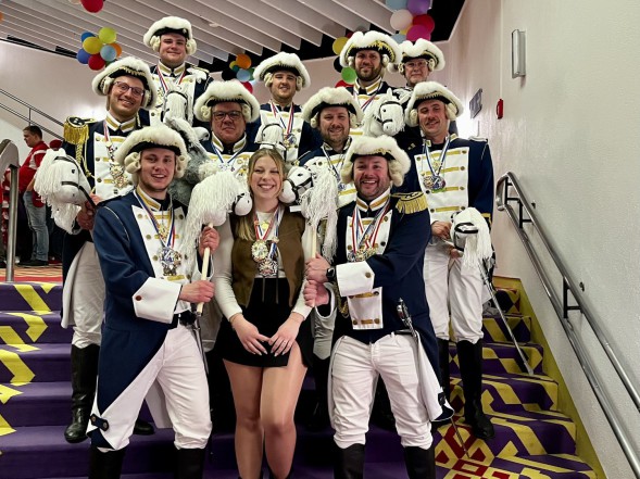 Die Trommler konnten ihren neu einstudierten Marsch präsentieren, wobei sie durch zwei Trompeten, gespielt von Lennas Weinem und Elias Brauer, begleitet wurden. Zudem gab es eine weitere Neuerung, denn Anja Ely und Bärbel Kauth wechselten bei einem Lied von der Trommel zur Lyra. In diesem Jahr feierte das Trommlercorps der Garde sein 11-jähriges Bestehen. Dies konnte man an dem liebevoll gestalteten Orden erkennen, den eine